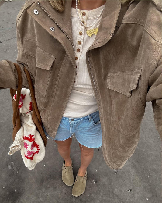 Lori Suede Bomber Jacket